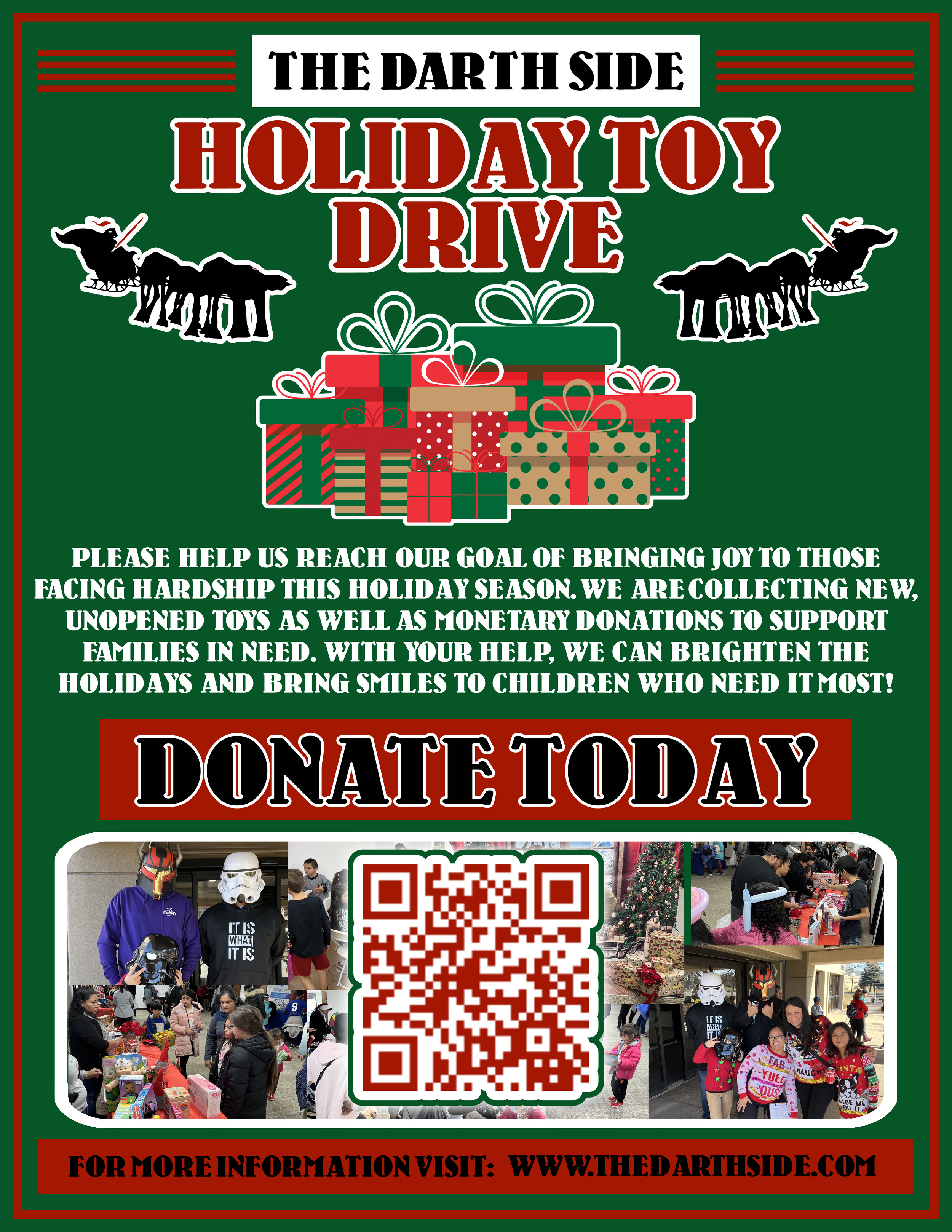 Based in Denver Colorado as a registered 501(c)(3) nonprofit organization, The Darth Side is committed to driving positive change through impactful, community-focused philanthropy. We collaborate with and support local organizations by offering innovative solutions and direct assistance tailored to their specific needs.